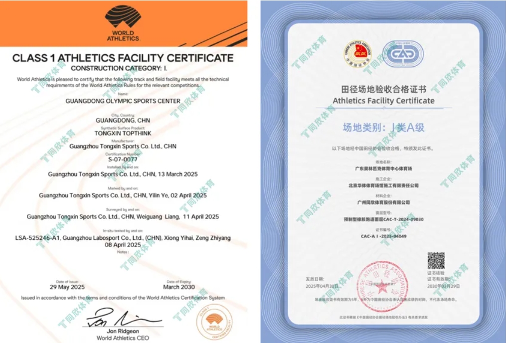 均將獲得世界田聯(lián)一級(jí)場地認(rèn)證