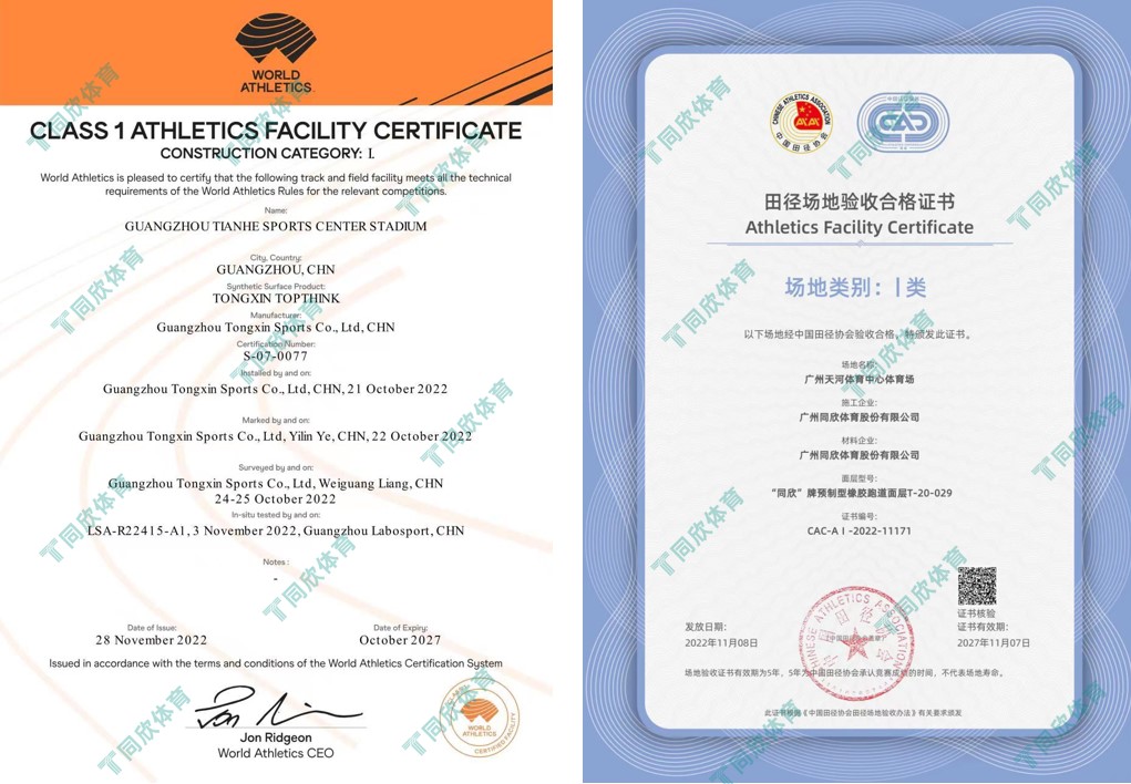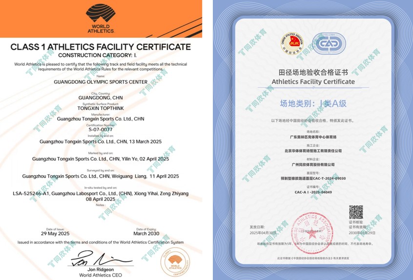 均將獲得世界田聯(lián)一級場地認(rèn)證